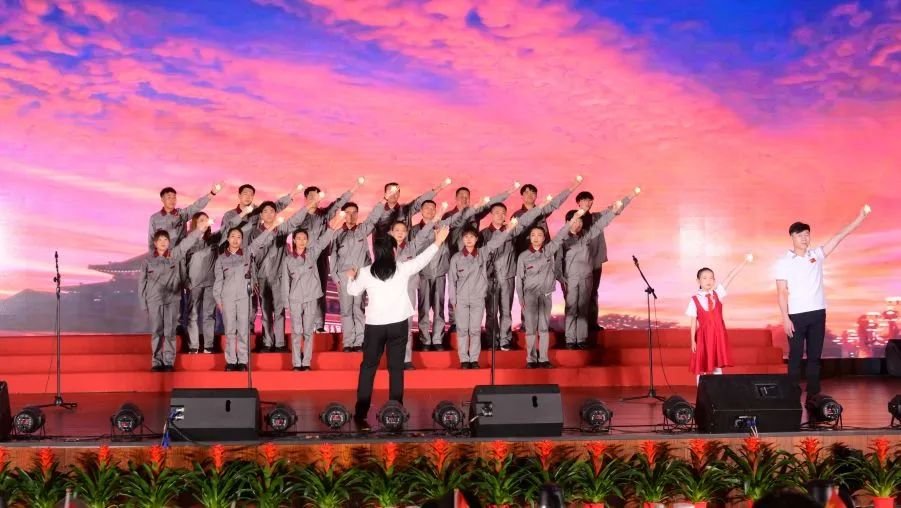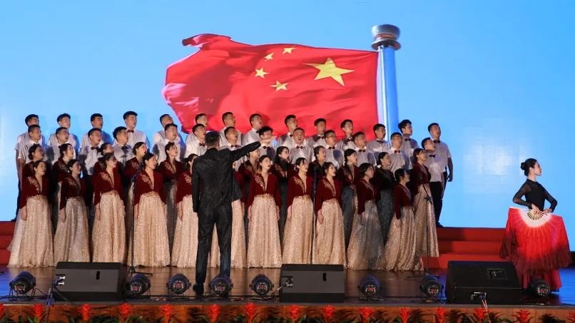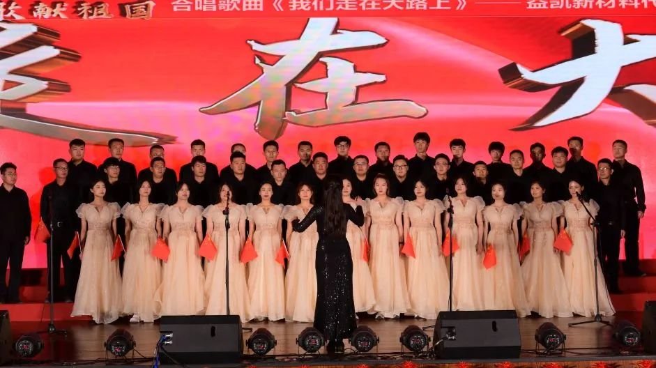 9月27日,機(jī)電公司二隊(duì)的《強(qiáng)軍戰(zhàn)歌》強(qiáng)勢開場,《我的中國心》飽含深情;益凱新材料的《我們走在大路上》意氣風(fēng)發(fā),《歌唱祖國》清脆嘹亮;新興板塊代表隊(duì)《我的祖國》激情澎湃、《萬疆》宛轉(zhuǎn)悠揚(yáng);撫順伊科思的曲目別出心裁,《義勇軍進(jìn)行曲(片段)》、《仰望星空》兩首歌以情景劇的形式展現(xiàn)了伊科思公司員工對祖國、公司的一片深情;研發(fā)中心代表隊(duì)《我們都是追夢人》青春洋溢,唱出了追夢路上的執(zhí)著,《沒有共產(chǎn)黨就沒有新中國》是心底最堅(jiān)定的信仰;壓軸出場的機(jī)電公司一隊(duì)大氣磅礴的《祖國不會(huì)忘記》、《走向復(fù)興》將整個(gè)展演推向了新的高潮。