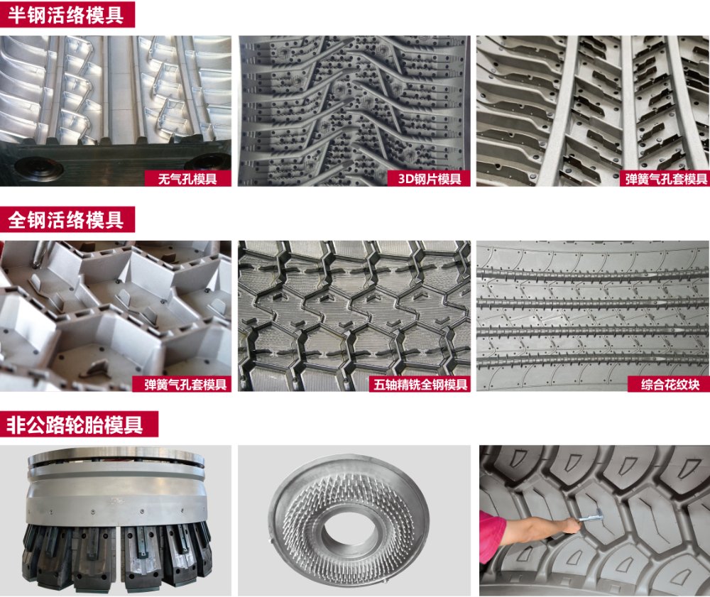 ● 采用先進(jìn)的加工工藝,保證控制模具的間隙,極好的減少膠邊的產(chǎn)生,保證輪胎外觀與動(dòng)平衡的要求。