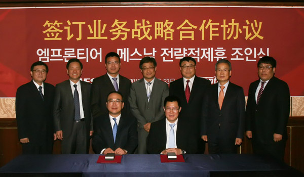 10月23日,軟控與韓泰輪胎全資子公司Emfrontier(EMF)公司在韓國首爾簽訂了旨在建立戰(zhàn)略合作伙伴關(guān)系的《合作意向書》,軟控常務(wù)副總裁鄭江家與EMF公司總經(jīng)理安在煥代表雙方簽約。雙方將在IT解決方案、工廠自動化、物流自動化三個領(lǐng)域內(nèi)展開深度合作,在全球范圍內(nèi)共同開發(fā)市場。
