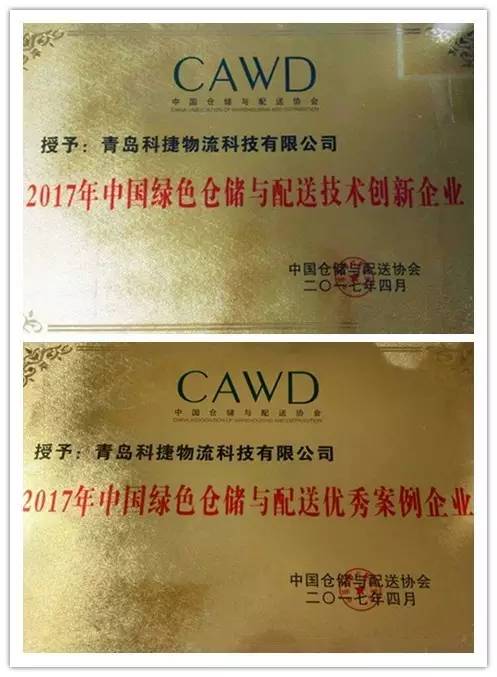 在當晚的頒獎典禮上,科捷以創新高效的綠色物流產品和項目案例獲得兩項大獎---“中國綠色倉儲與配送技術創新企業”、“中國綠色倉儲與配送優秀案例企業”??平莸闹悄芙徊鎺Х謷C和堆垛機產品繼入選《中國綠色倉儲與配送技術與設備推薦目錄》后,在此次大會上正式獲得綠色倉儲與配送設備與技術標識授標,這次授標進一步肯定了科捷產品的研發和創新實力。