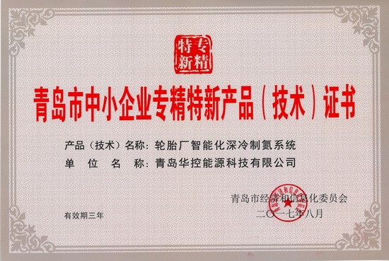 近日,青島市專精特新產品證書下發,由軟控子公司華控能源研發的輪胎廠智能化深冷制氮系統被認定為青島市專精特新產品,該工藝是目前輪胎硫化先進的制氮工藝,與PSA制氮系統相比較,制氮純度可高達99.999%,節能量存在明顯優勢,系統運行穩定,節能效果顯著,大大降低了用戶的生產成本。