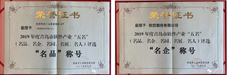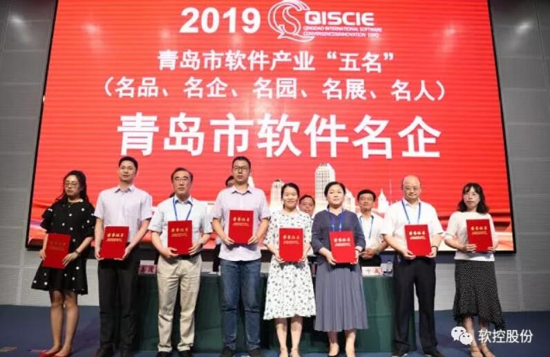 7月26日,青島市創建中國軟件名城工作總結及成果發布會隆重召開,大會頒發了2019年度青島市軟件產業“五名”證書。軟控股份有限公司榮獲2019年度青島市軟件產業“名企”稱號,《軟控輪胎工業數據服務APP》榮獲“名品”稱號,何寧董事長出席頒獎典禮。