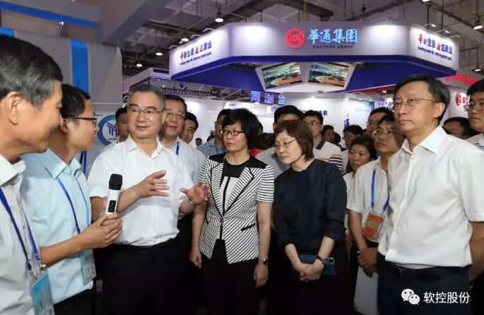 7月27日上午,在2019青島國際軟件創新融合博覽會上,山東省委常委、青島市委書記王清憲在青島市委常委、常務副市長薛慶國,高新區工委副書記、管委主任尚立群,青島市工信局局長姜波等領導陪同下蒞臨高新區展區軟控股份展位。