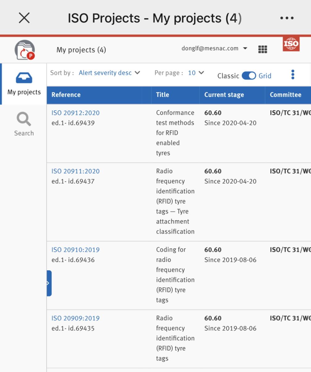 輪胎用RFID電子標(biāo)簽四項(xiàng)國(guó)際標(biāo)準(zhǔn)于2015年10月正式立項(xiàng),由國(guó)際標(biāo)準(zhǔn)化組織ISO/TC31(輪胎、輪輞和氣門嘴國(guó)際標(biāo)準(zhǔn)化技術(shù)委員會(huì))下設(shè)的WG10“RFID tyre tags”工作組負(fù)責(zé)制定;工作組由來(lái)自中國(guó)、法國(guó)、意大利、美國(guó)、英國(guó)、德國(guó)、日本、韓國(guó)、芬蘭、加拿大、比利時(shí)、泰國(guó)、荷蘭、奧地利、阿拉伯聯(lián)合酋長(zhǎng)國(guó)等國(guó)家相關(guān)企業(yè)單位的60余名專家組成。2015年10月至今,WG10工作組先后在布魯塞爾、三亞、馬賽、西雅圖、羅馬、東京、格林維爾、青島等地方召開(kāi)8次全球工作會(huì)議,若干次工作組網(wǎng)絡(luò)會(huì)議,討論標(biāo)準(zhǔn)內(nèi)容,解決各方分歧,四項(xiàng)國(guó)際標(biāo)準(zhǔn)分別并先后在全球范圍內(nèi)完成CD(委員會(huì)階段)投票,DIS(國(guó)際標(biāo)準(zhǔn)草案)投票,F(xiàn)DIS(最終國(guó)際標(biāo)準(zhǔn)草案)投票,最終形成統(tǒng)一意見(jiàn)。繼2019年8月份,ISO 20909:2019 Radio frequency identification (RFID) tyre tags,ISO 20910:2019 Coding for radio frequency identification (RFID) tyre tags兩項(xiàng)國(guó)際標(biāo)準(zhǔn)發(fā)布后,ISO 20911:2020 Radio frequency identification (RFID) tyre tags-Tyre attachment classification, ISO 20912:2020 Conformance test methods for RFID enabled tyres兩項(xiàng)標(biāo)準(zhǔn)于2020年4月20日發(fā)布。目前,ISO/TC31/WG10工作組承擔(dān)的輪胎用RFID電子標(biāo)簽四項(xiàng)國(guó)際標(biāo)準(zhǔn)已經(jīng)全部發(fā)布。