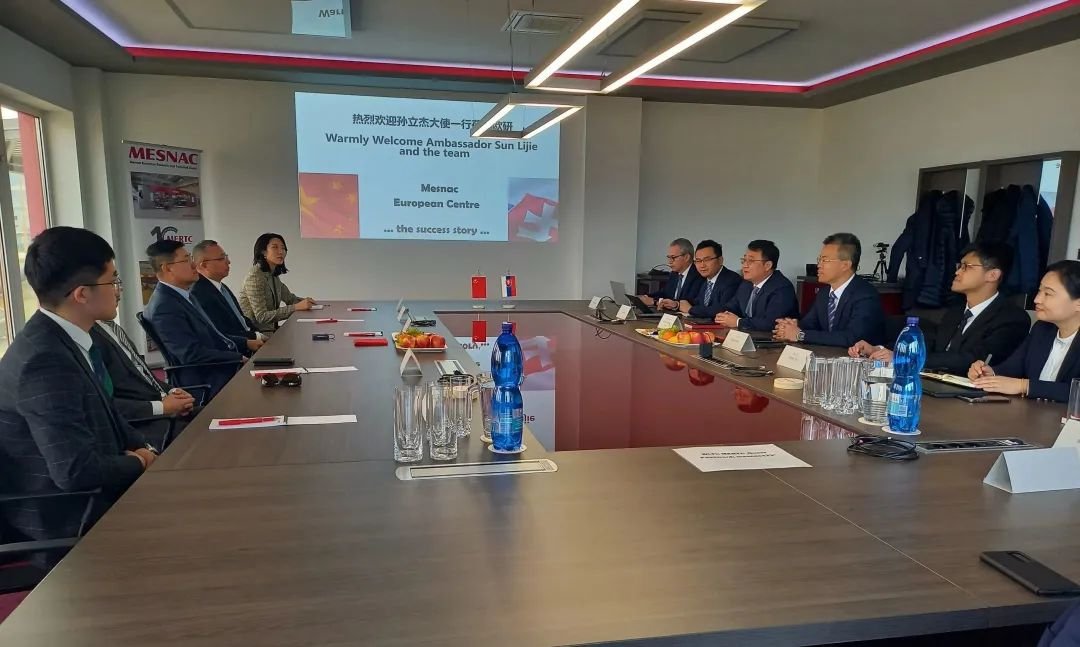 3月14日,中國駐斯洛伐克大使孫立杰、商務參贊王宏亮一行到軟控歐洲研發中心考察調研。